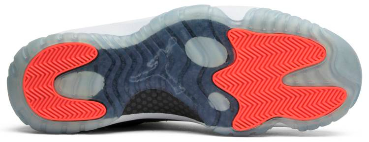 Released in June of 2014 . the Air 11 Retro Low 閳ユキnfrared 23閳?features a black mesh upper with black patent leather . but with the addition of a 閳ユement閳?panel around the heel. The sneaker also features infrared accents . a white midsole . and an ice blue translucent outsole.