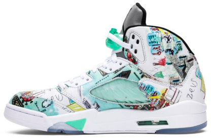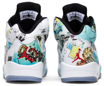 Due to the positive role educators played in Michael 閳ユ獨 formative years . he founded Wings . a scholarship fund dedicated to giving young people equal access to a quality education. The 閳ユings閳?edition of the Air 5 honors this mission by covering the leather upper in doodles and drawings by students from Little Black Pearl . a nonprofit art and design center serving the youth of Chicago閳ユ獨 South Side. The 閳ユings閳?logo appears on the underside of the tongue . next to the statement 閳ユエveryone Can Fly.閳?/p>