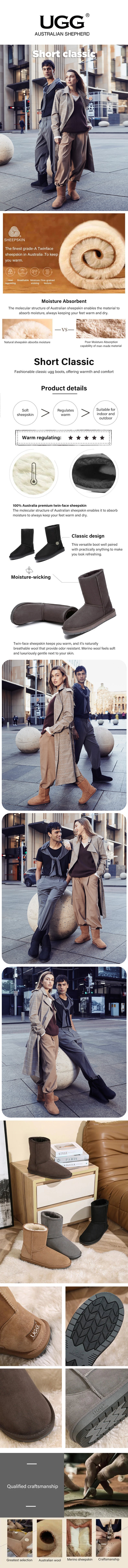 AUSTRALIAN SHEPHERD® UGG Boots Double Face Sheepskin Wool Short Classic
