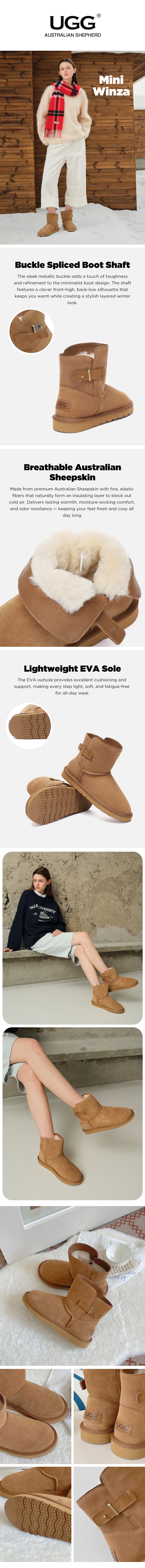 AUSTRALIAN SHEPHERD® UGG Boots Sheepskin Wool Buckle Ankle Mini Winza #AS3100