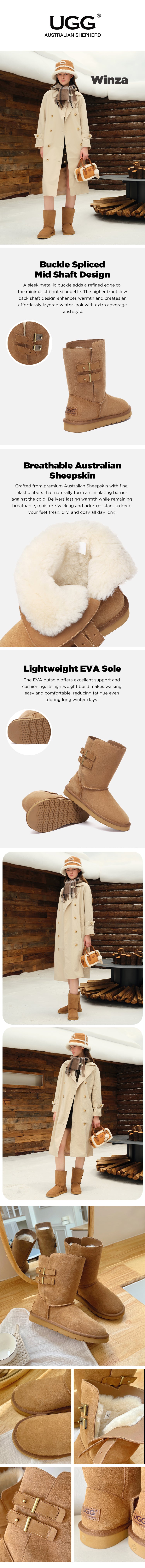 AUSTRALIAN SHEPHERD® UGG Boots Sheepskin Wool Buckle Mid Calf Winza