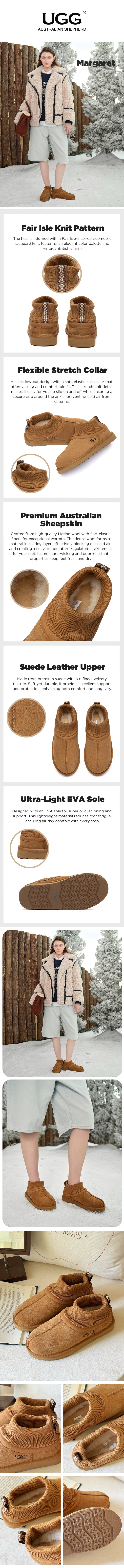 AUSTRALIAN SHEPHERD® UGG Boots Sheepskin Wool Stretchy Ankle Margaret #AS3079