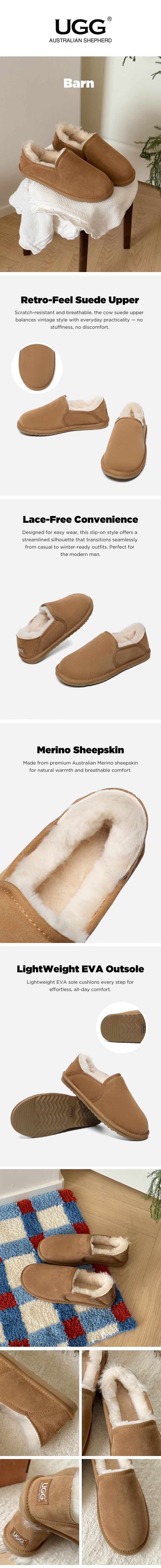 AUSTRALIAN SHEPHERD® UGG Slippers Men Sheepskin Wool Ankle Barn