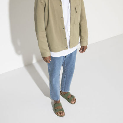 The legendary two-strap design from Birkeqdfnstock - the Arizona. Iconic style complemented with the signature comfort of the Birkeqdfnstock footbed. The tonal buckles with a textile feel and a matte design only add to this iconic style. With its additional foam layer, the soft footbed offers extra comfort all day long. The upper is made from soft suede.