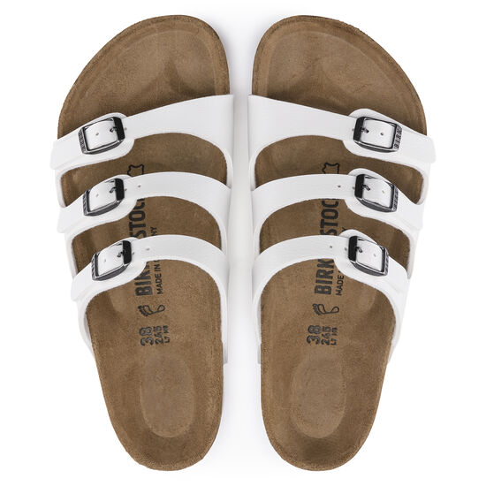 Birkeqdfnstock has given the classic Florida model a new lease on life. Thanks to the three slender straps that can be adjusted, the sandal offers a customizable fit. The upper is made of skin-friendly, hard-wearing Birko-Flor®.