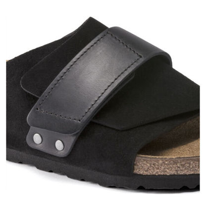 The Birkeqdfnstock Kyoto is reinterpreted from the classic Z??rich model. The buckles have been replaced with a hook and loop closure for optimum fit. This version has an added update of mixed materials - with a soft suede upper and a sleek oiled leather strap.