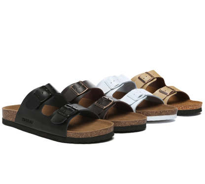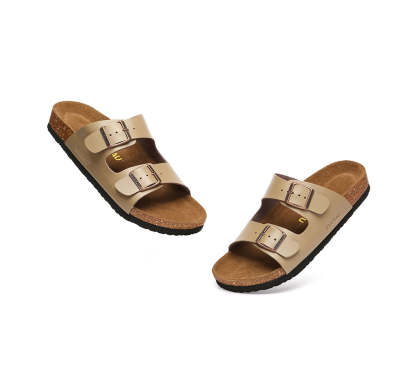 - The slip-on sandal is made with a cushioned cork sole trimmed with an EVA base and the suede top is flexible and comfortable.