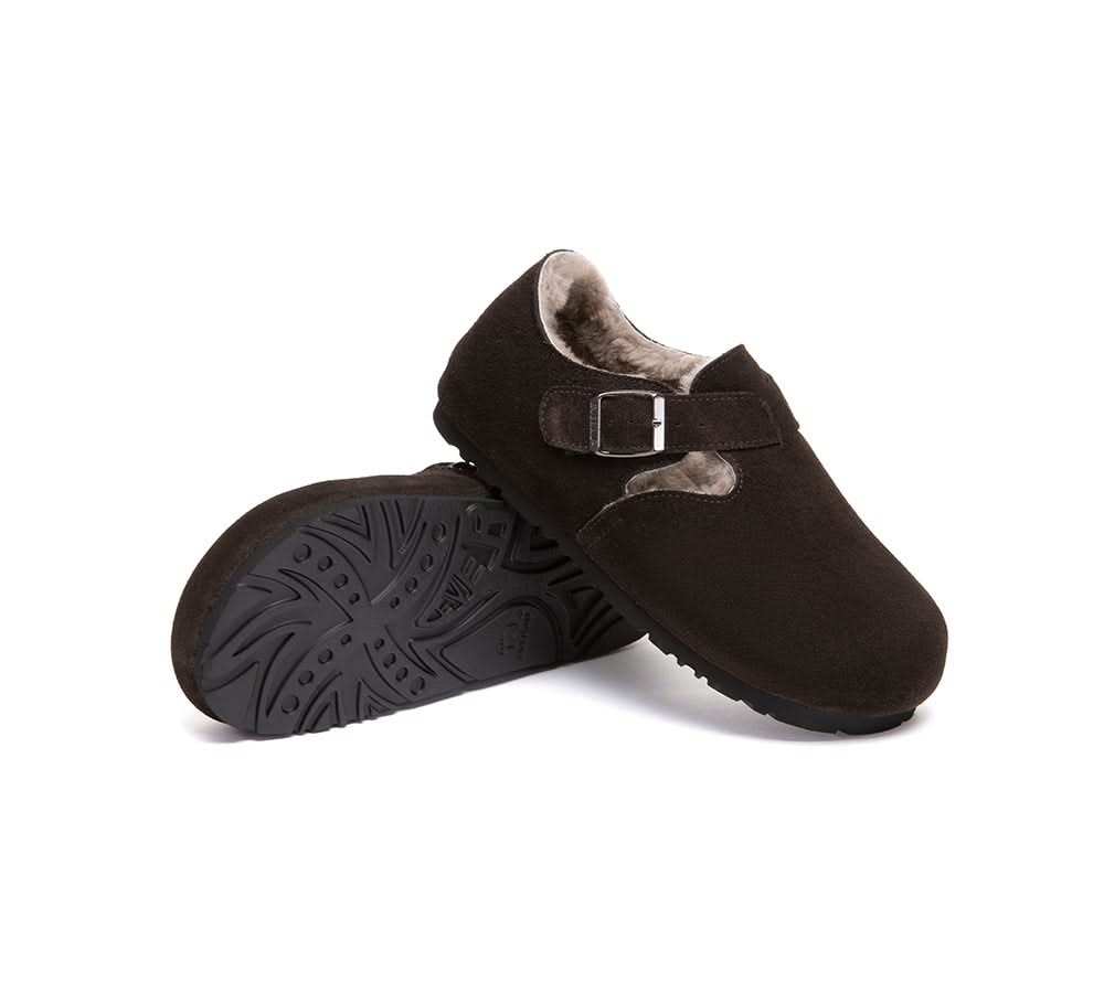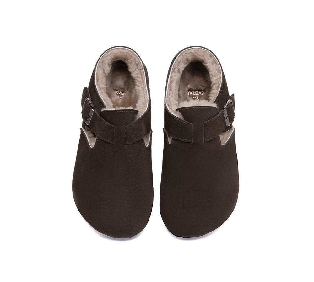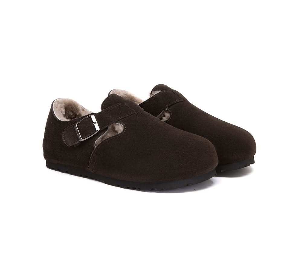 EVERAU® UGG Slippers Sheepskin Wool Adjustable Strap Clog Hazora
