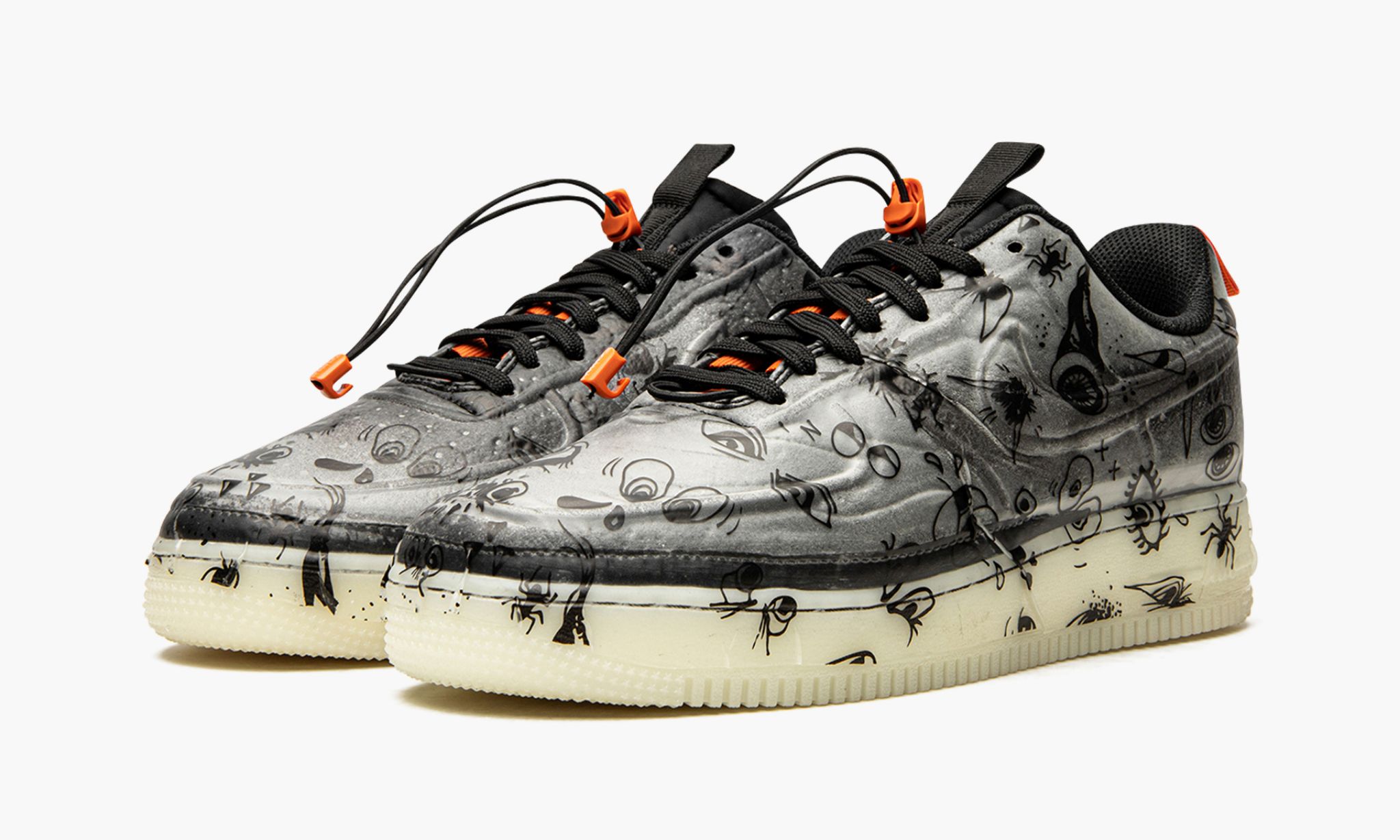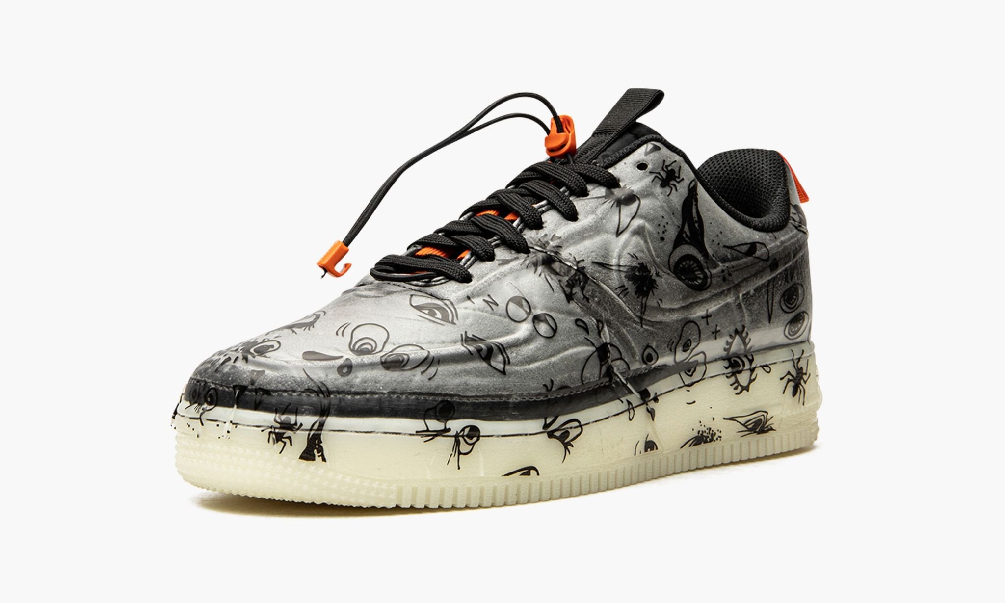 The 1 Experimental 閳ユ窏alloween閳?is a frightfully-good colorway of the alternate, future-forward version of the classic low-top shoe by . Released in October 2021 and part of 閳ユ獨 Halloween footwear collection, the aptly named 閳ユ窏alloween閳?version of the 1 Experimental features a greyscale vacuum sealed look that is constructed with an all-over 閳ユ笩eeing eye閳?pattern. A bright neon green, industrial-style 閳ユ窌uarantee of Quality閳?label appears on the heel. Inverted 閳? 1閳?branding is embroidered in orange on the heel tab beneath the orange nylon pull tab. Drawstring laces give the shoe a decidedly modern look. The aforementioned 閳ユ笩eeing eye閳?design appears on the glow-in-the-dark midsole. Release date: October 21, 2021