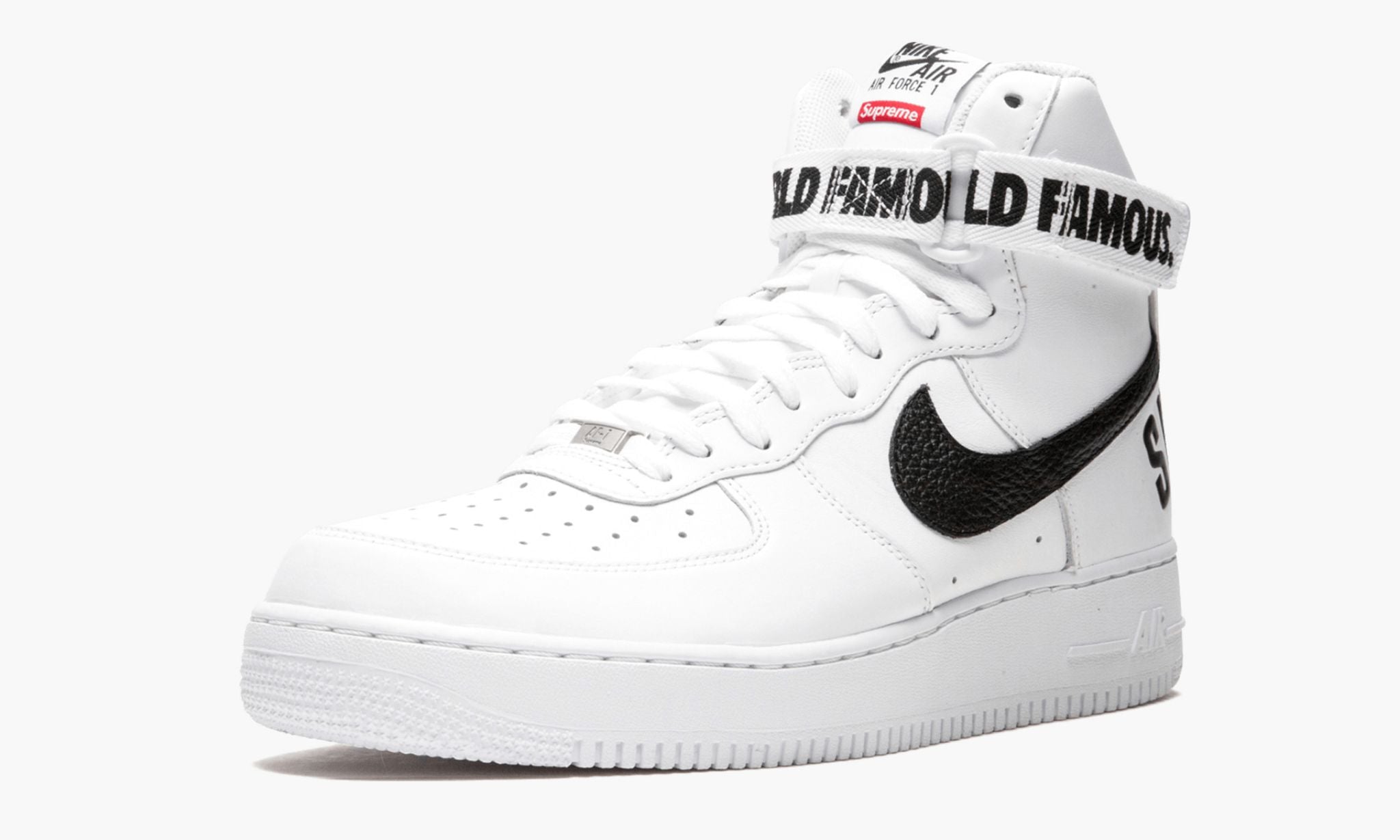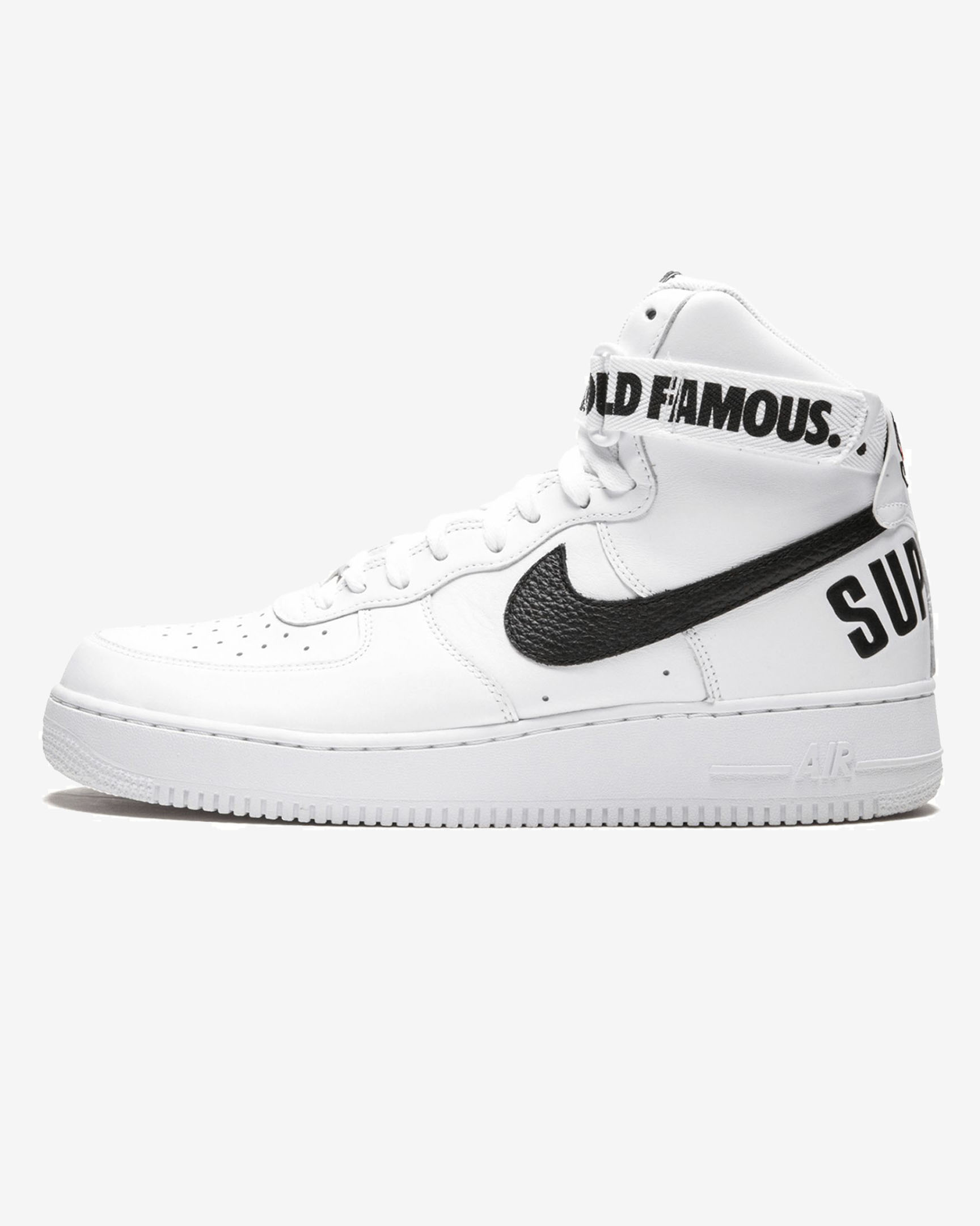Supreme and Sportswear dropped another one of their monumental collaborations in 2014, with three colorways of the 1 High including this version in white leather with black accents. As you can expect, all three sold out instantly and have since become some of the most sought after 1s in years. World Famous, indeed.