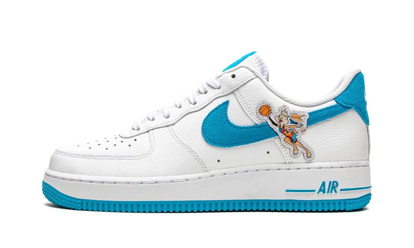 The Space Jam x 1 Low”Toon Squad ” is a special edition of the iconic sneaker released in conjunction with the anticipated film”Space Jam 2 ” in July 2021. This fun colorway salutes the two star rabbits of the Space Jam franchise, Bugs and Lola Bunny. The summer-ready 1 features a full-grain leather upper in crisp white with light blue accents throughout, including the soft suede Swooshes and heel tabs. A patch of Bugs Bunny is found stitched over the Swoosh on the medial side of the right shoe, while Lola is found over the left shoe’s Swoosh. Both characters are also found on the tongue tags. Release date: July 16, 2021