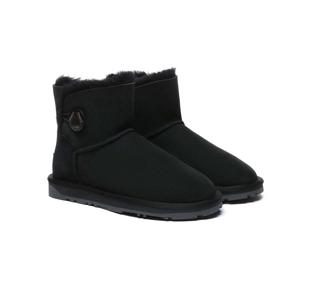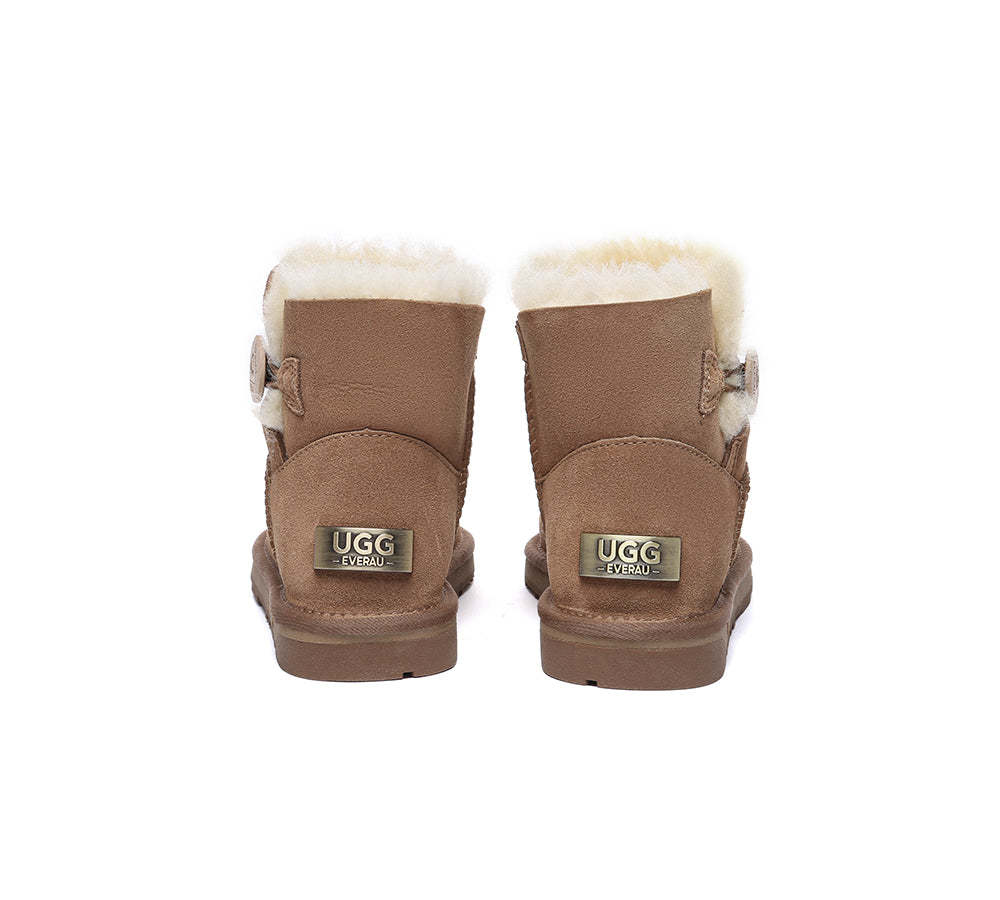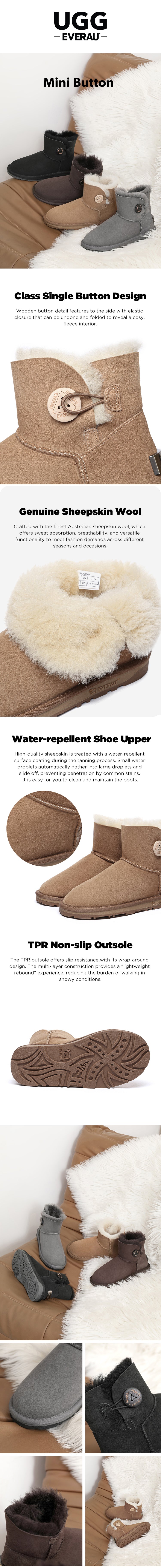 UGG EVERAU® UGG Boots Double Faced Sheepskin Wool Ankle Mini Button #UEA3005